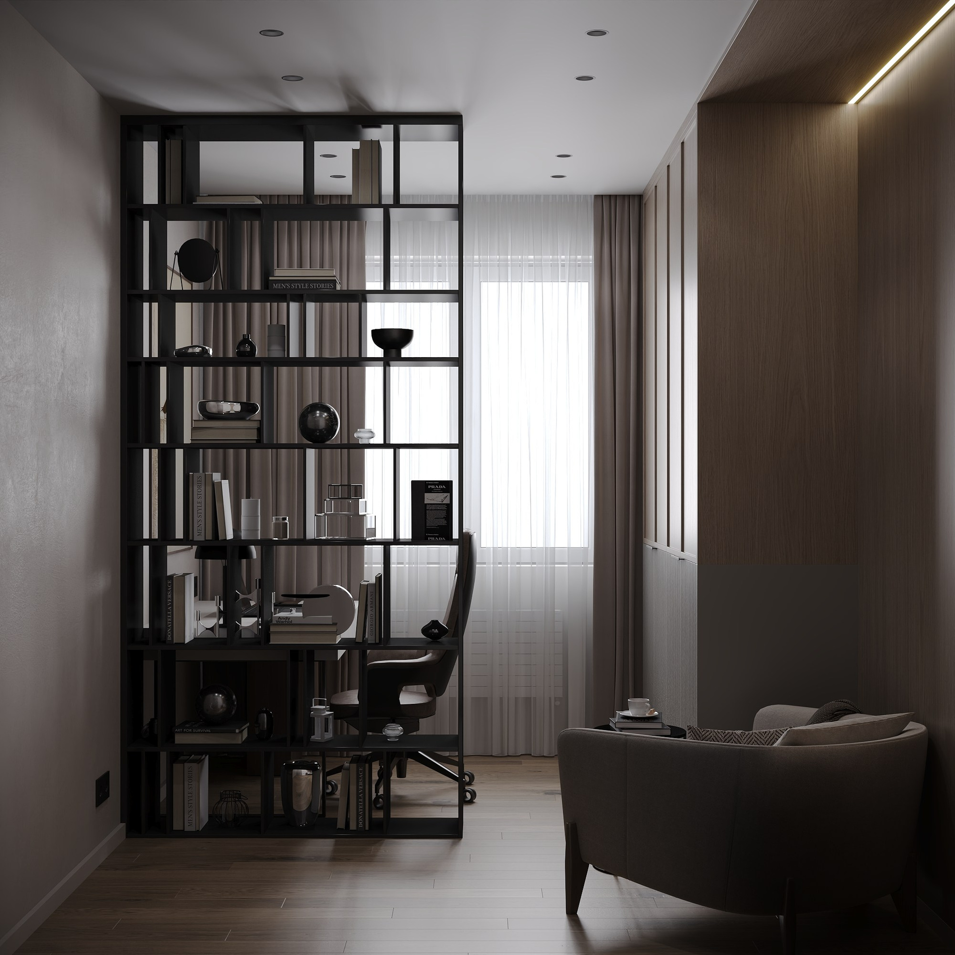 Для молодого мужчины, работающего в IT-сфере и увлекающегося активными видами спорта, потребовалось создать функциональный интерьер с продуманным зонированием.