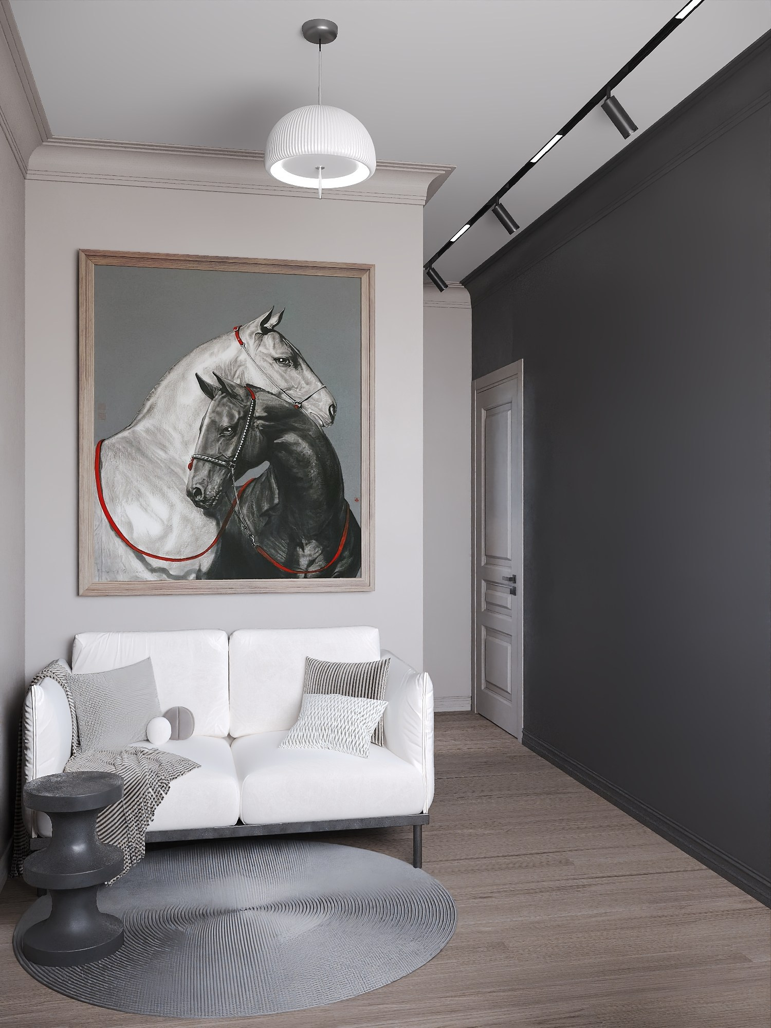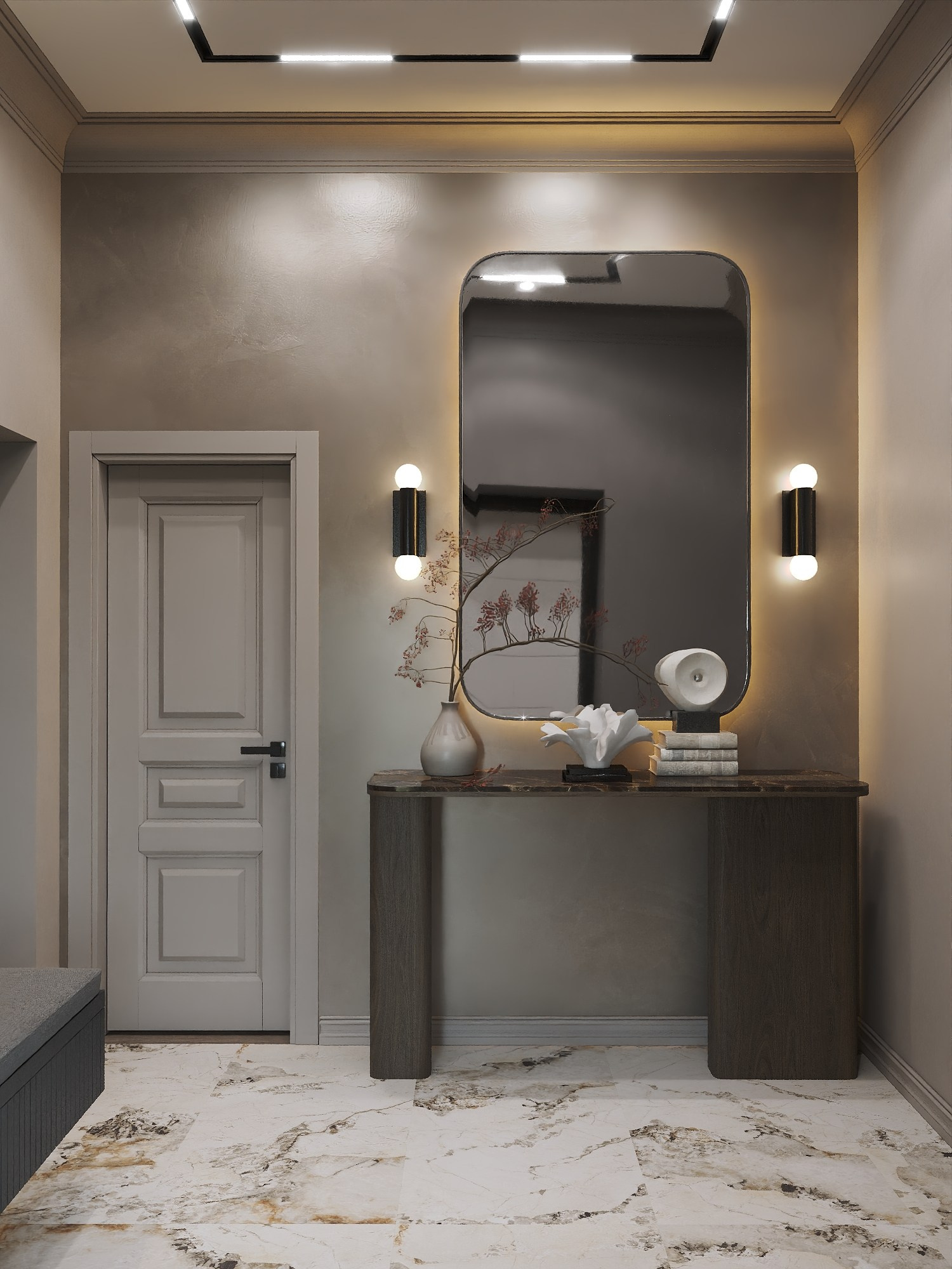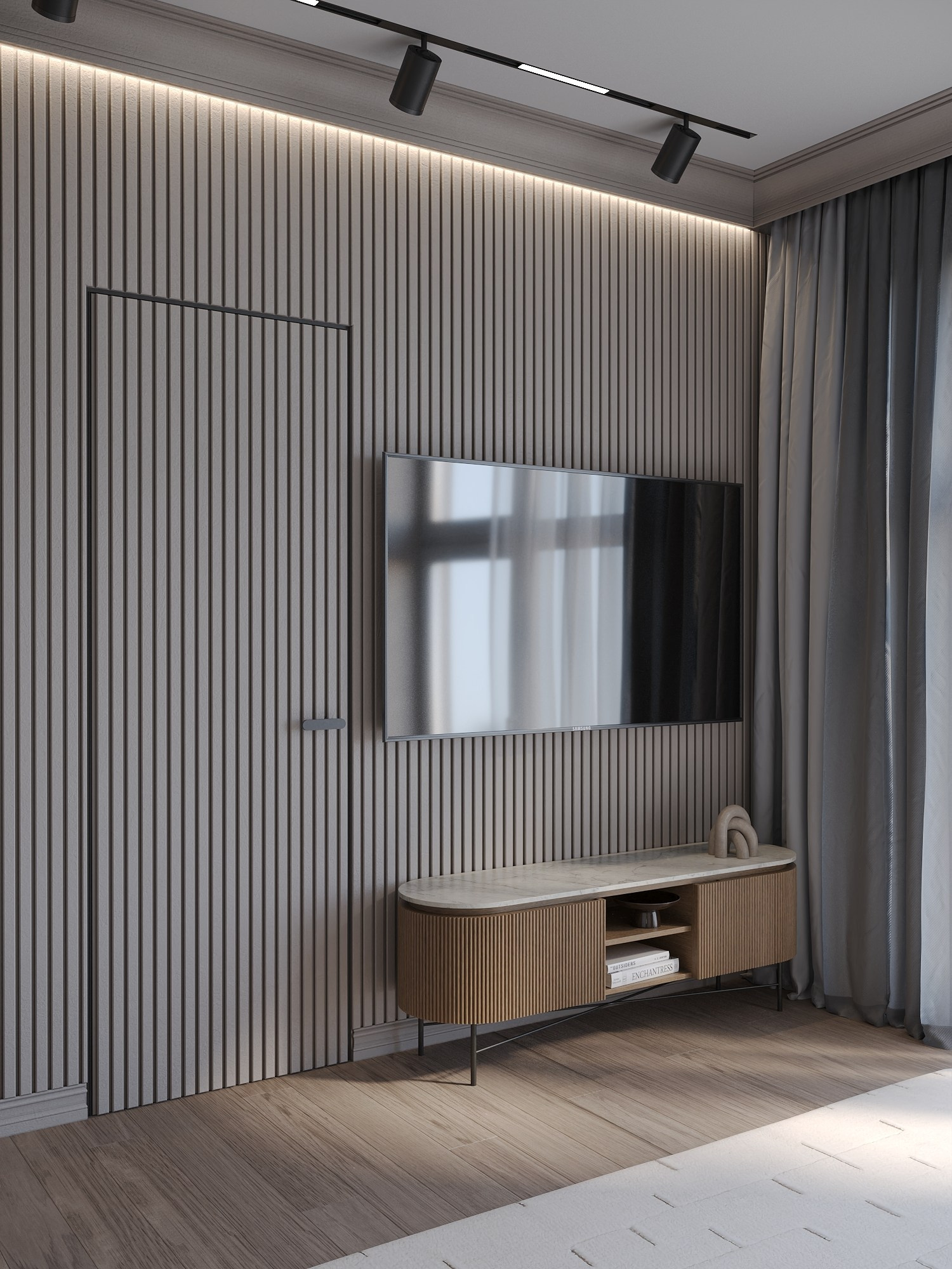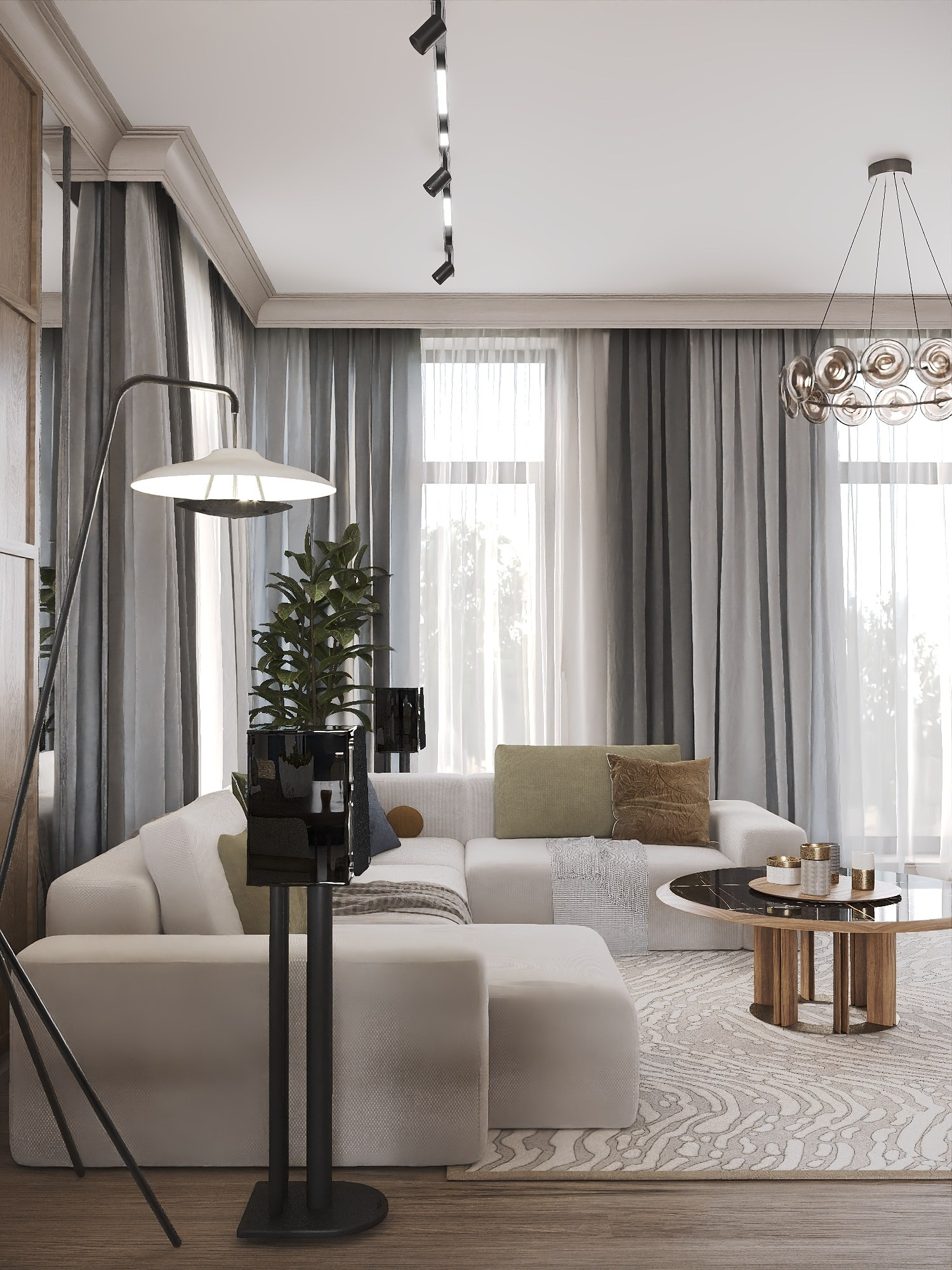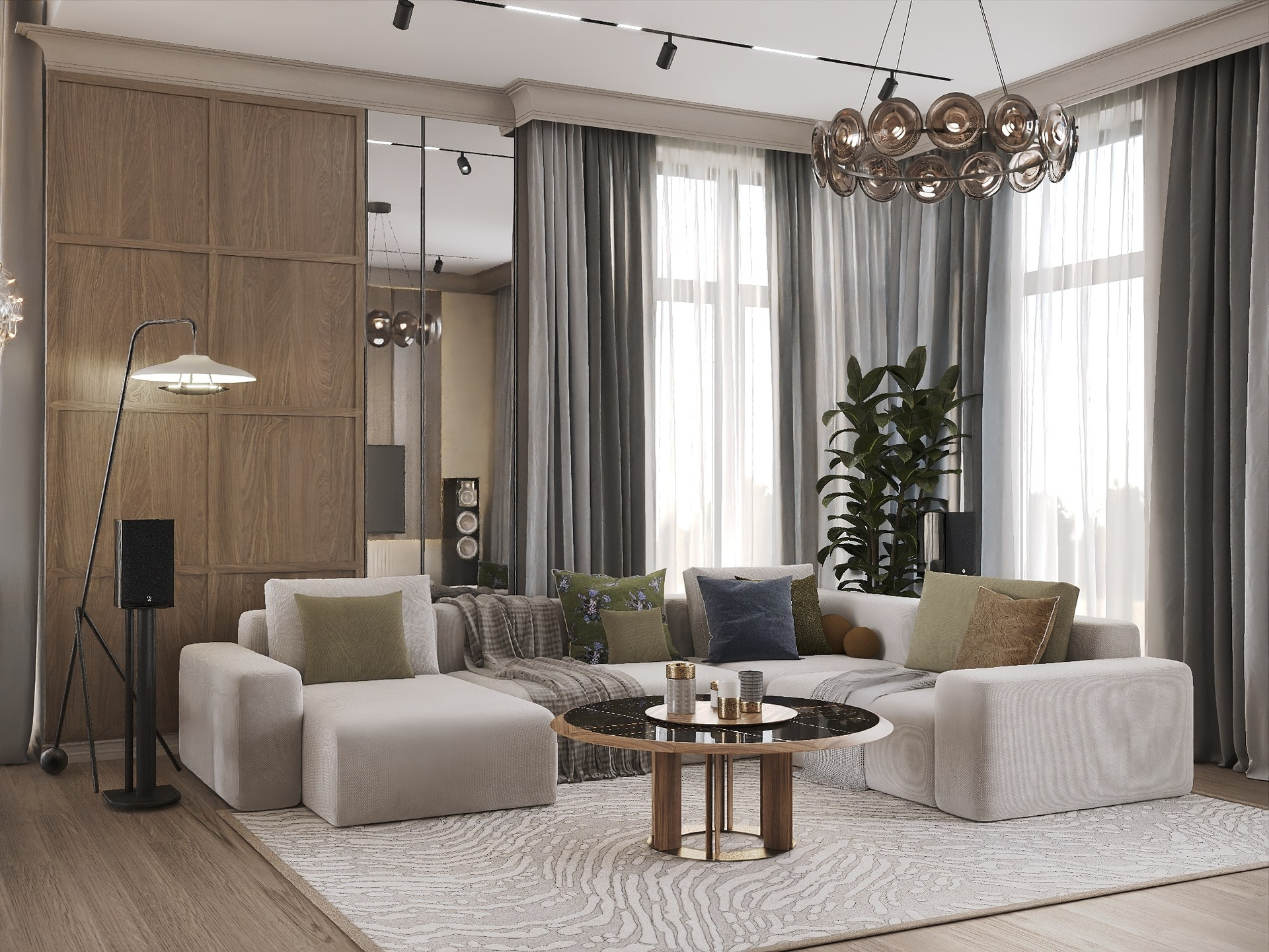 Клиенты хотели объединить элегантность современной классики с акцентами модерна — добавить грубоватые текстуры, насыщенные цвета и обилие натуральных материалов.