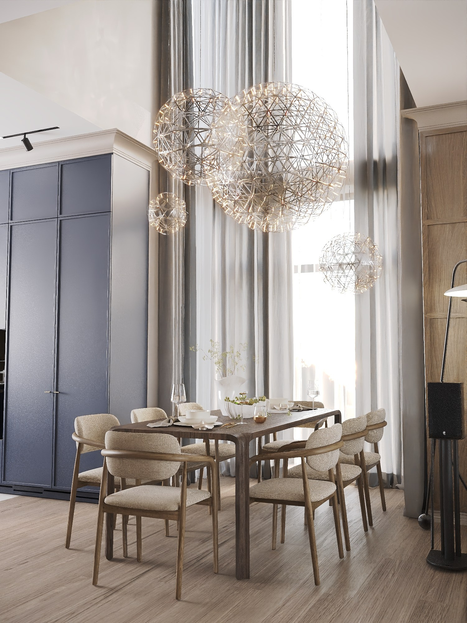 — особый акцент — на светлый интерьер с деревянными элементами, зеркалами и акцентной мебелью.