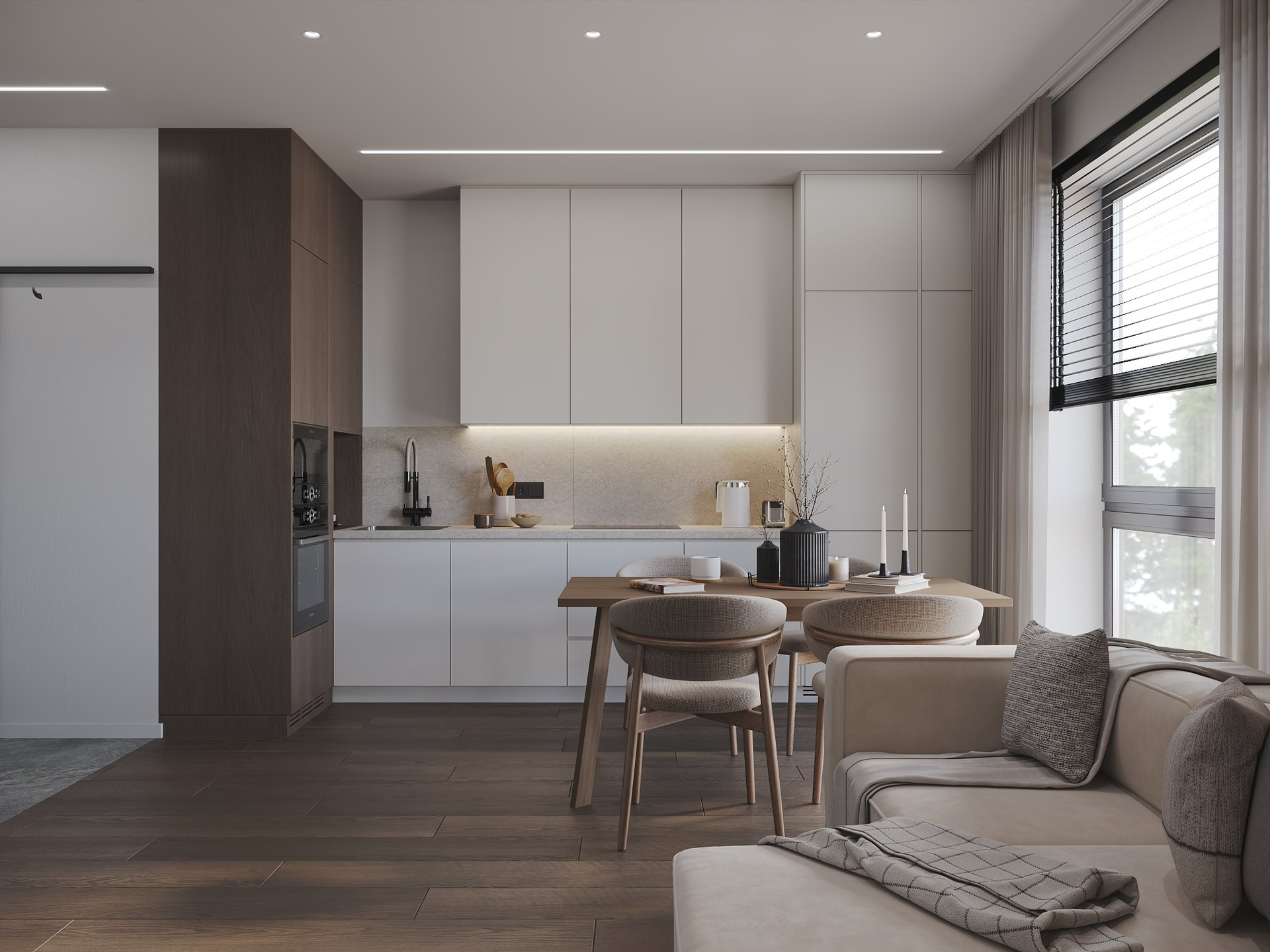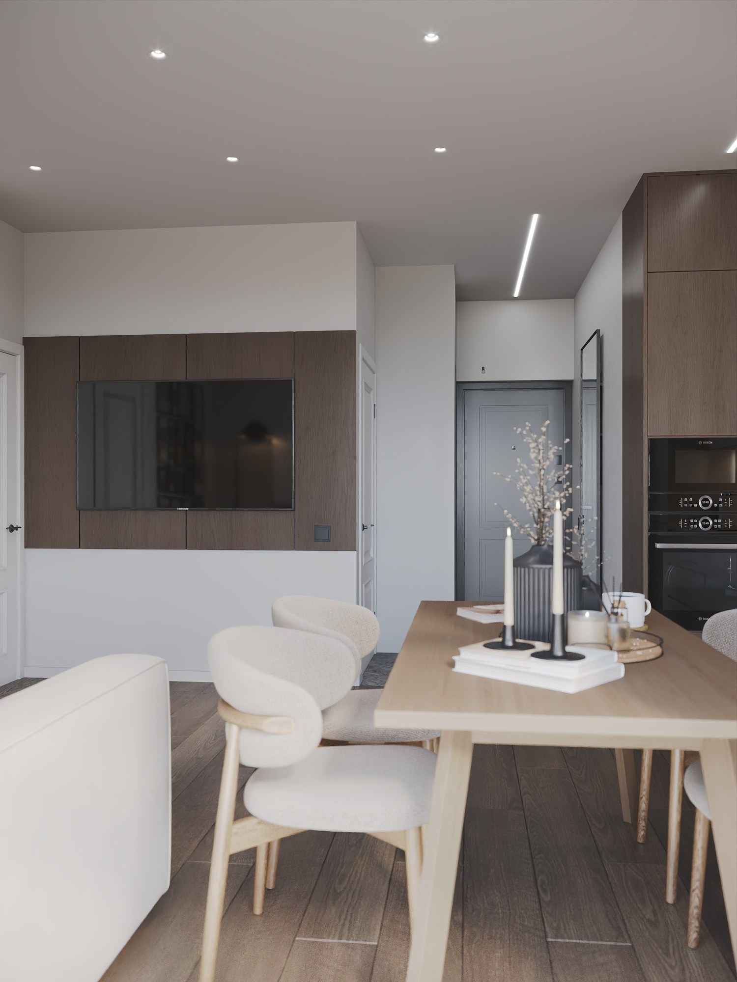 Для семьи из трех человек в Санкт-Петербурге потребовалось разработать дизайн-проект квартиры площадью 56 м² с максимально эффективным использованием пространства.